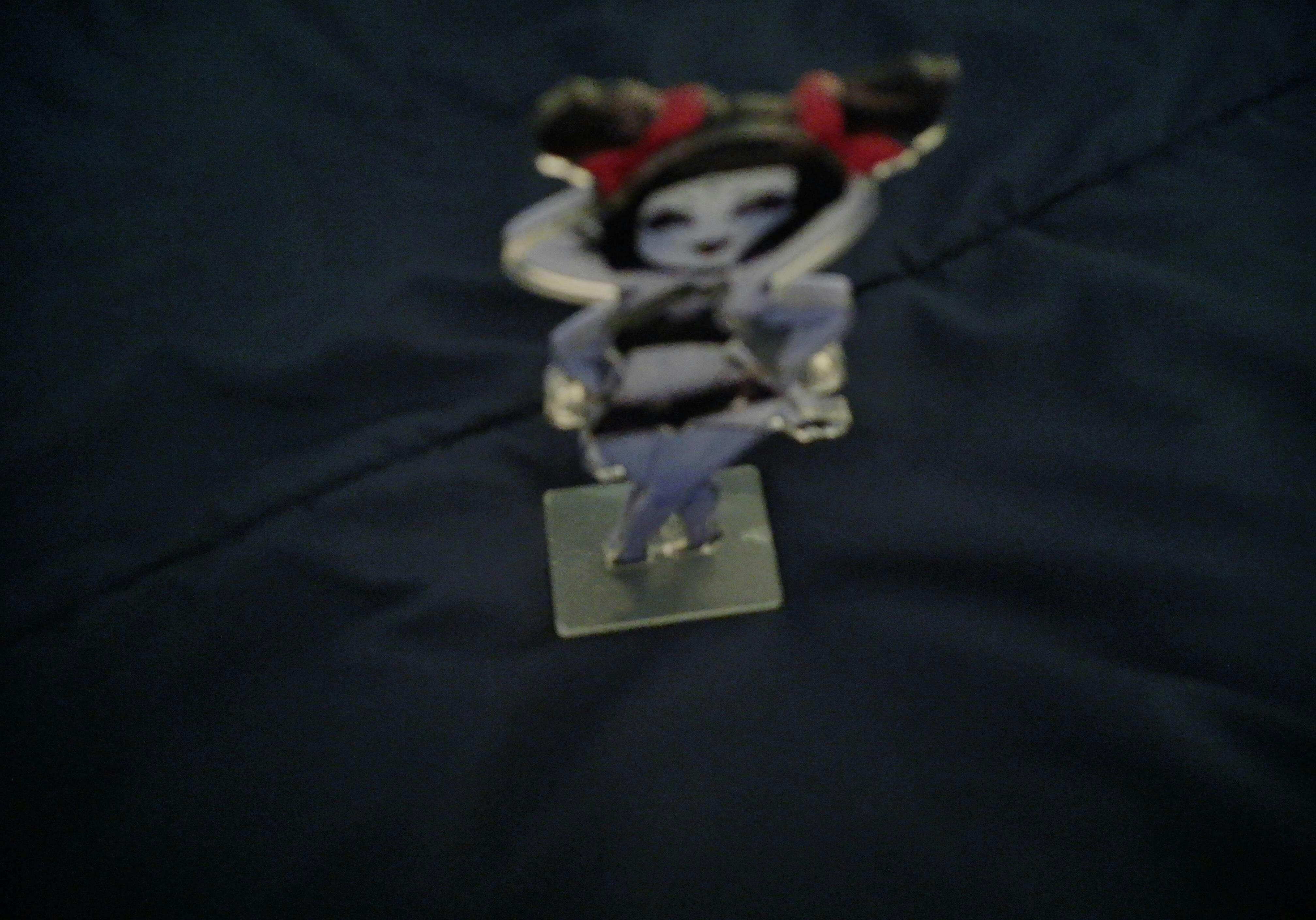 This standee cute featuring a spider girl but my issue is with the add-ons being too bulky if you use the base instead of the features being on the base layer of the standee art. If you choose clothed here, you get three magnetic add-ons to dress the standee but with 3 of them they can fall off easily. The art is cute though.
